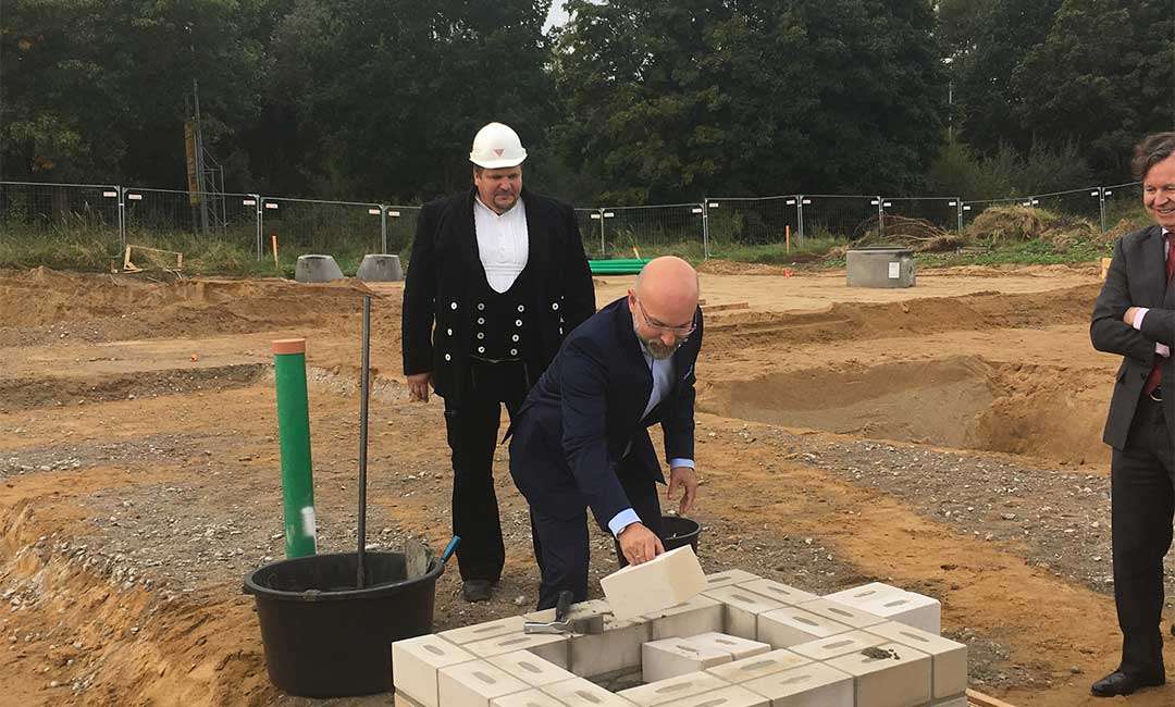 Der erste Hammerschlag und die feierliche Einbetonierung der Schatulle erfolgten am 30. September durch die Geschäftsführer Weinkauff und Grund (WIBU Gruppe), Herrn Sarach (Bürgermeister der Stadt Ahrensburg) in Anwesenheit der Mitarbeitern der WIBU Gruppe. Die Schatulle beinhaltete traditionell eine aktuelle Zeitung aus Ahrensburg und Hamburg sowie Baupläne, Broschüren, einen Latthammer und Artikel, welche durch die WIBU vertrieben werden.