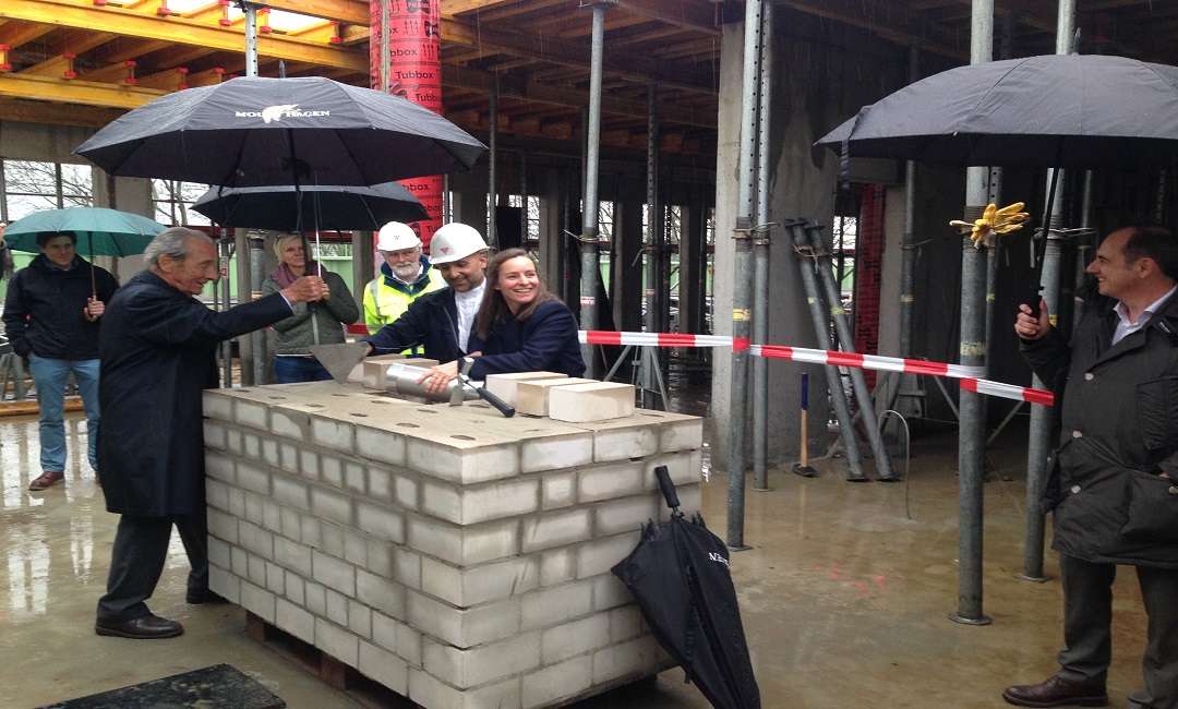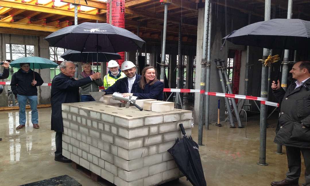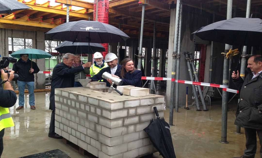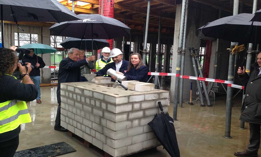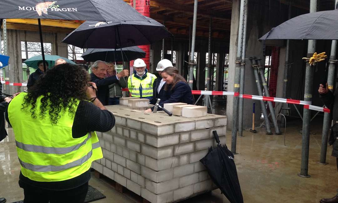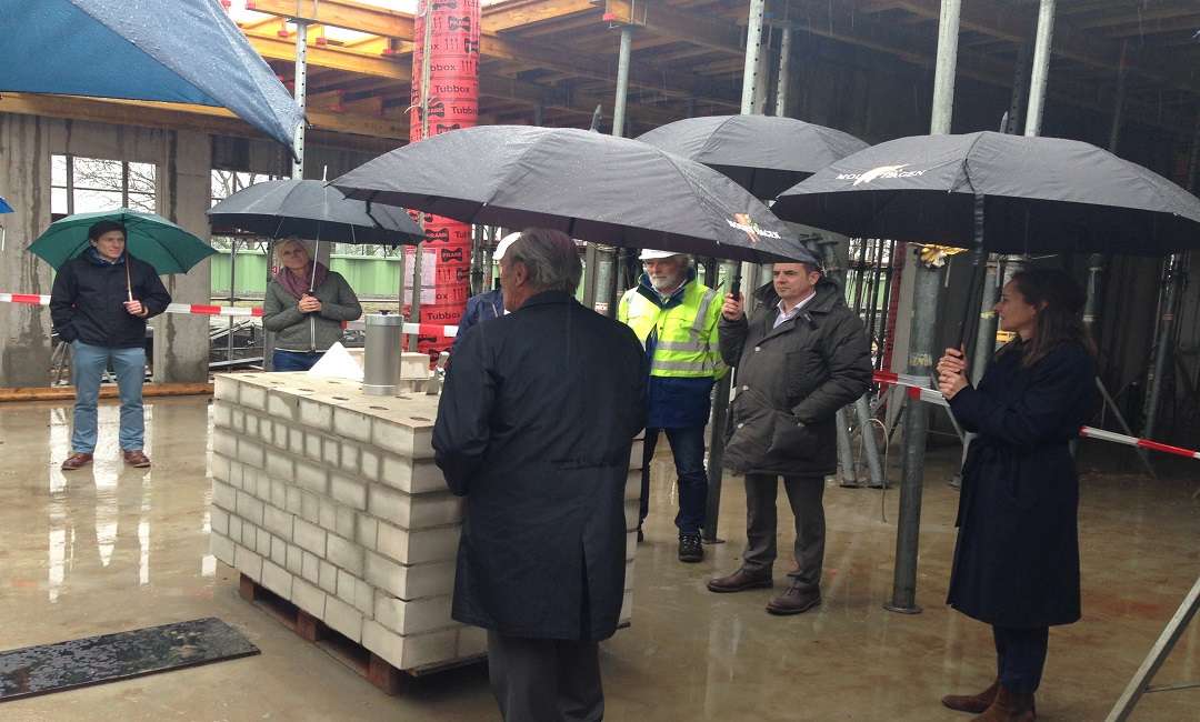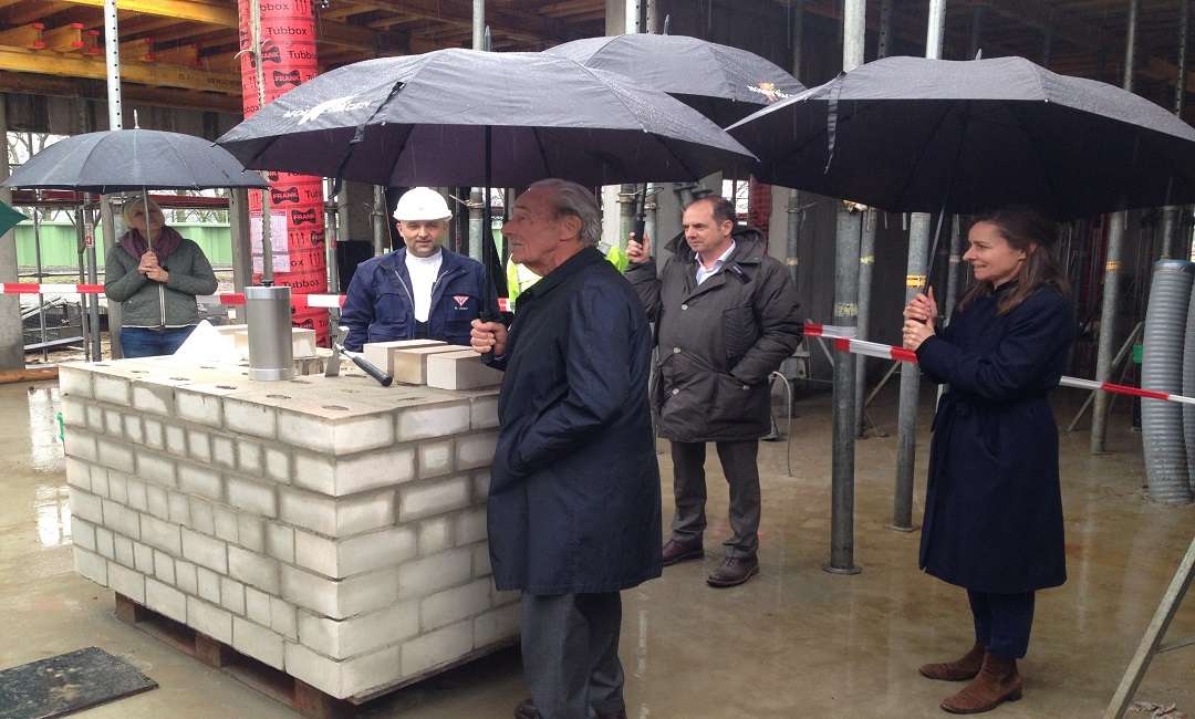 Bei strömendem Regen fand die Grundsteinlegung des neuen Bürogebäudes der Deutschen Extrakt Kaffee GmbH in Wilhelmsburg statt.
