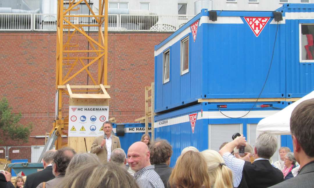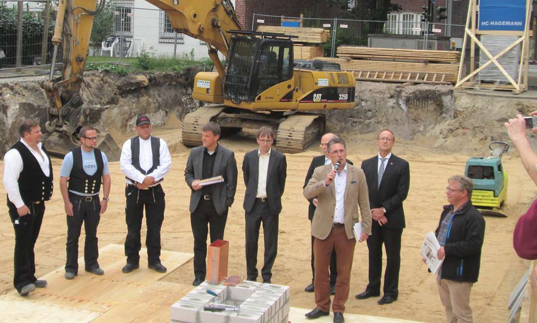 Als für den Rohbau verantwortliche Baufirma war auch HC HAGEMANN unter den Gästen und beglückwünschte die Bauherren zur erfolgreichen Grundsteinlegung.