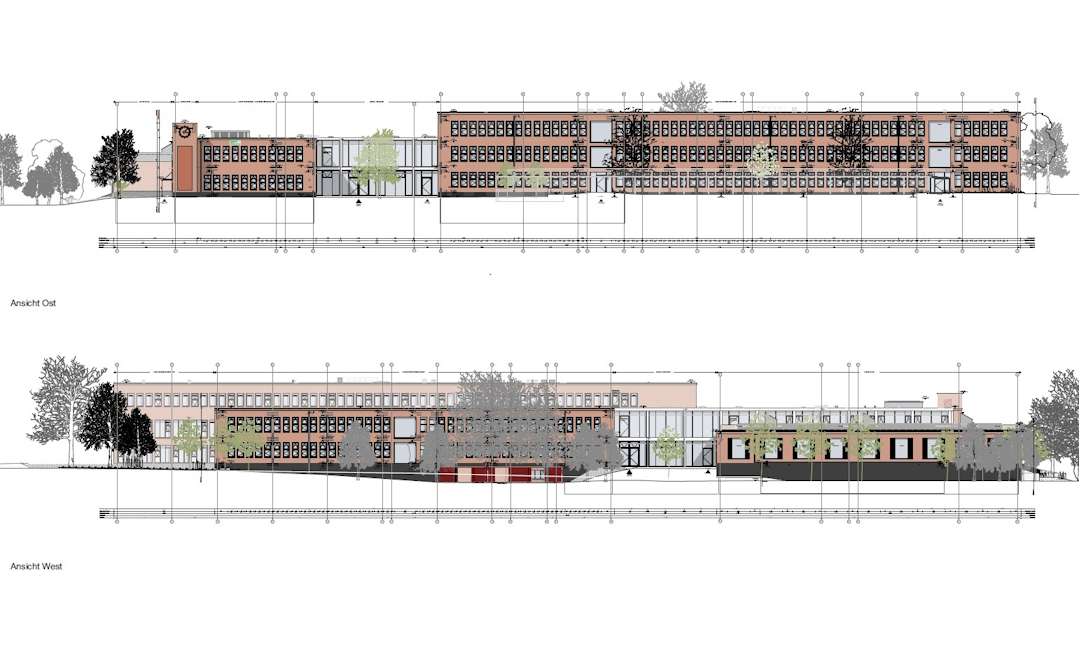 Von der Stadt Kiel wurde HC Hagemann mit dem Neubau einer Gemeinschaftsschule inkl. Mensa und Dreifeldsporthalle in Kiel beauftragt. Der Neubau wird mit Ausnahme der eingeschossigen Sporthalle zwei- und dreigeschossig ausgeführt und erhält eine Teilunterkellerung. Die Ausführung erfolgt als Massivbau mit Stahlbetonwänden, -stützen, -sohle und decken sowie tragenden und nichttragenden Mauerwerkswänden. Die Dächer werden als Flachdächer mit Begrünung und Photovoltaik ausgeführt. Die Fassade erhält einen roten Verblender und Lochfenster sowie eine Pfosten-Riegel-Fassade. Die Gesamtabmessung beträgt ca. 130 x 60 m. Die max. Höhe über OK Terrain beträgt ca. 12,60 m. Die Bruttogeschossfläche beträgt ca. 9.700 m², der Bruttorauminhalt gesamt ca. 50.000 m³. Die Erschließung erfolgt über 4 Treppenräume.