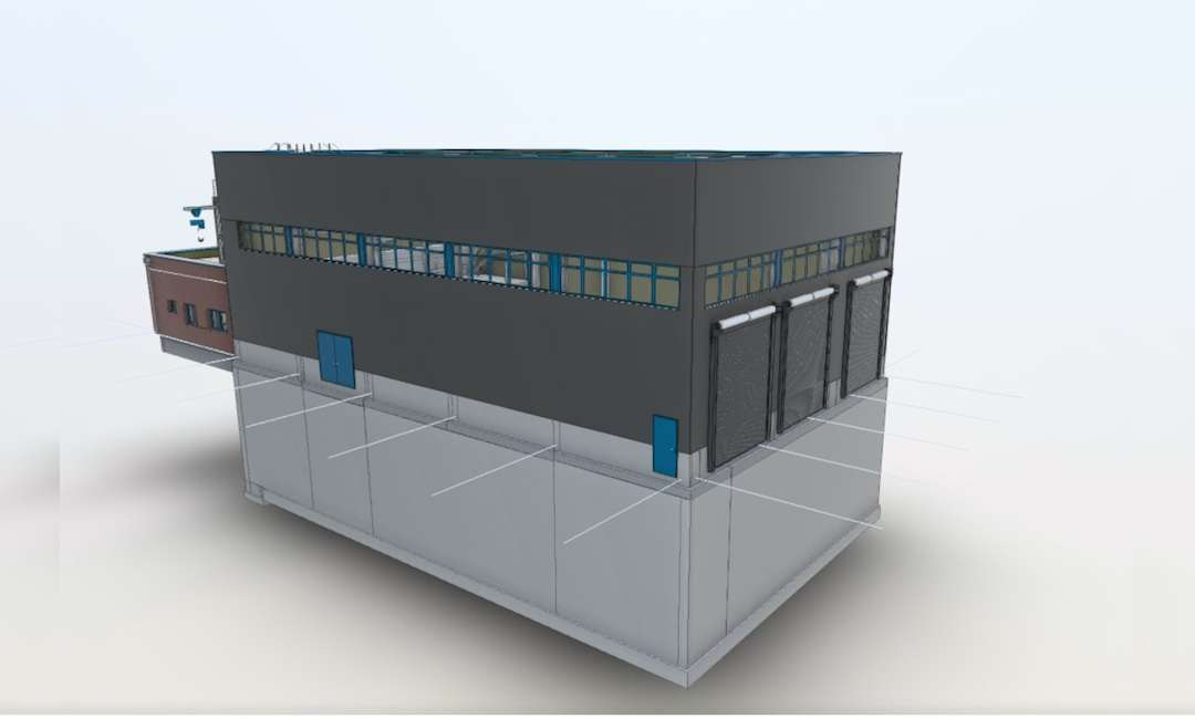Die Steuerung der Anlagentechnik und die Sozialräume werden in einem Nebengebäude untergebracht. Das Nebengebäude wird in Massivbauweise errichtet und bekommt eine Klinkerverblendung.