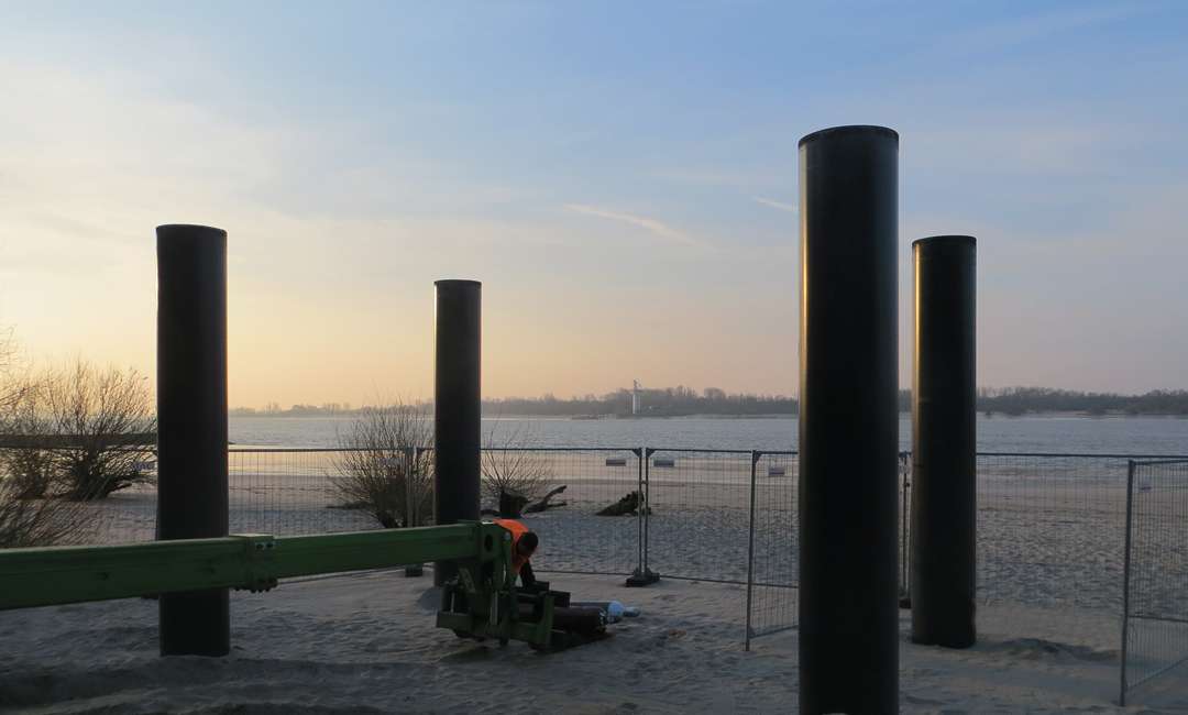 Jetzt wird alles besser werden: Acht moderne Container mit Holzverkleidung auf sieben Meter hohen Stahlpfählen bilden die neue Station für die Helfer der DLRG am Elbstrand. Der zweistöckige Posten hat einen Wach- und Sanitätsraum, eine Küche und sanitäre Einrichtungen – ein Luxus auf den die Lebensretter bisher verzichten mussten.