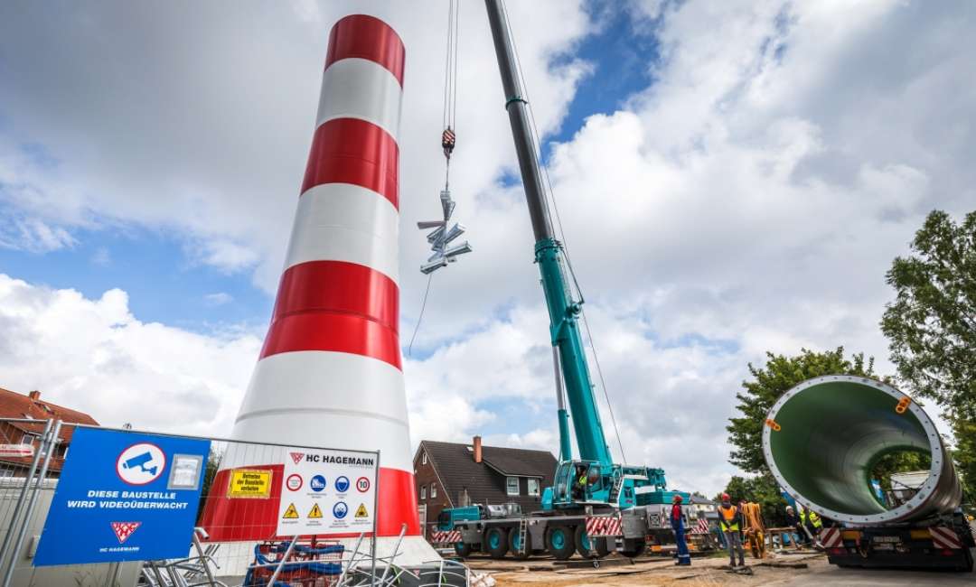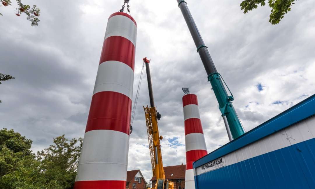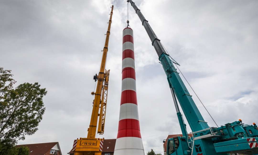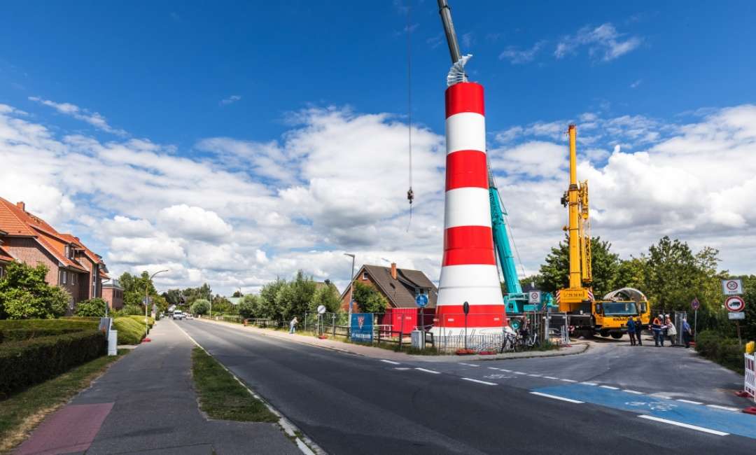 In Glückstadt werden in dieser und in der kommenden Woche die Turmstücke der sogenannten Richtfeuerlinie Glückstadt, bestehend aus Ober- und Unterfeuer, montiert. Die beiden neuen Türme wurden vom Wasserstraßen- und Schifffahrtsamt Hamburg beauftragt. Sie dienen der Schifffahrt auf der Elbe zur Orientierung und sehen optisch wie Leuchttürme aus. Die beiden neuen Richtfeuer ersetzen die in die Jahre gekommenen alten Türme, haben eine Höhe von 43,72m (Oberfeuer) und 22,15m (Unterfeuer) und überragen die alten Türme um 10 bzw. 7 Meter.
