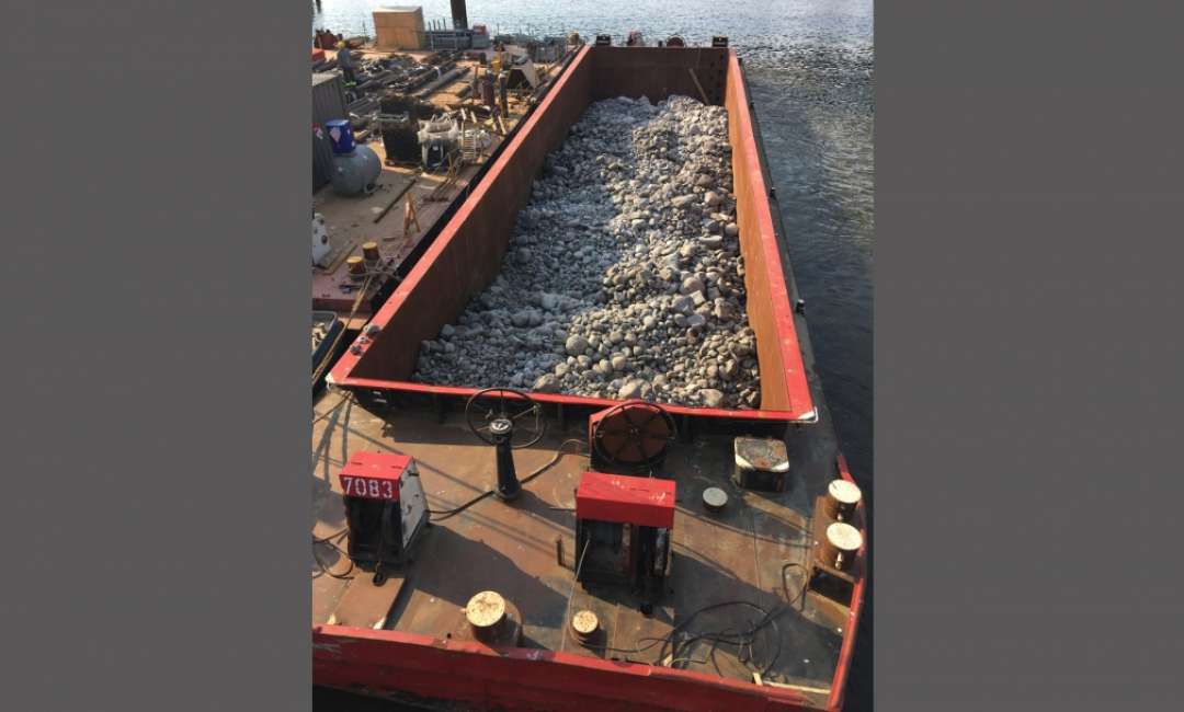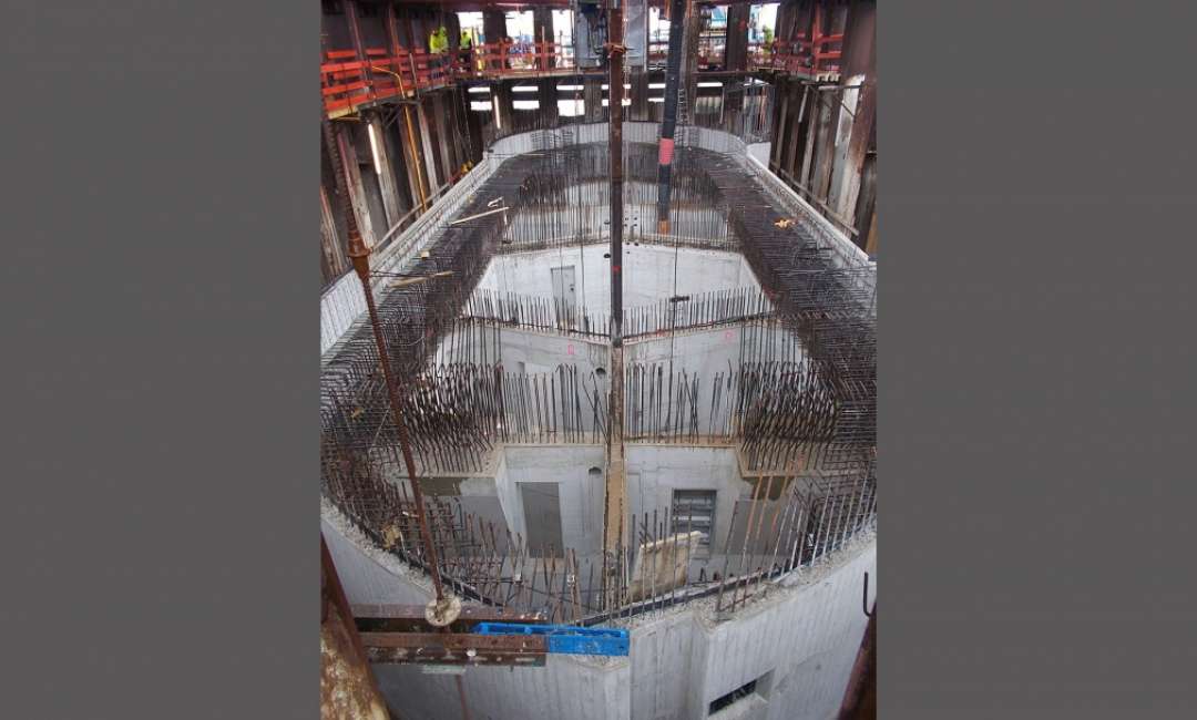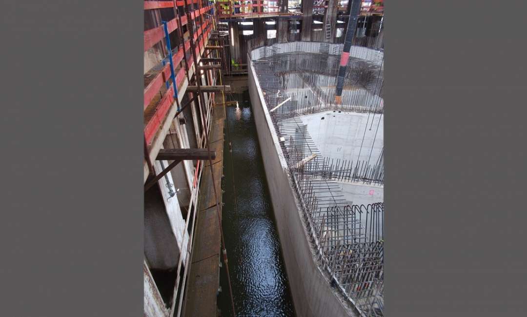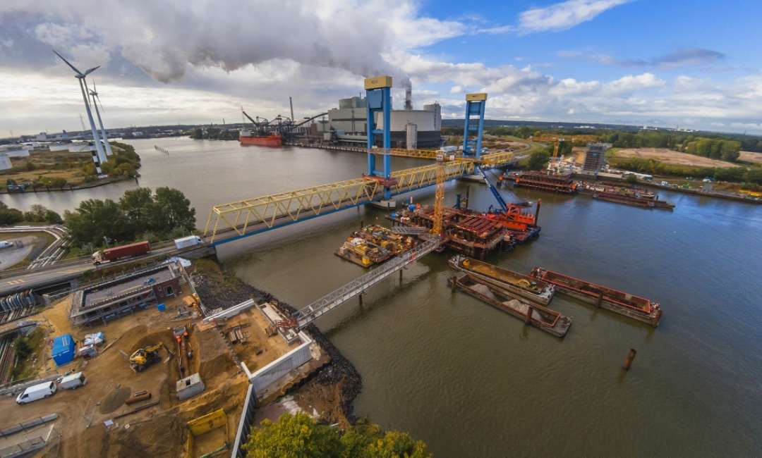 Am 02.10.2018 konnte das Absenken der beiden Senkkästen (je 29 m x 14 m x 35 m) auf eine Endtiefe von ca. - 30 mNN erfolgreich abgeschlossen werden. Insgesamt wurden hierbei ca. 15.000 m³ Boden im Spülverfahren gefördert. Bis zu 30 Taucher/Druckluftarbeiter haben im Schichtbetrieb (24 Std/Tag) 760 Tonnen „hindernde“ Steine händisch aus der Arbeitskammer geborgen. In den beiden Senkkästen wurden bis jetzt rund 2800 Tonnen Betonstahl verbaut auf eine Menge von 5700 m³ Beton. Die Arbeitskammer selbst wurde mit rund 800 m³ Beton ausbetoniert. Aktuell laufen die HDI-Arbeiten und die Vorbereitungen für die Herstellung des Dükers (ø 2,50 m, Länge 130 m).