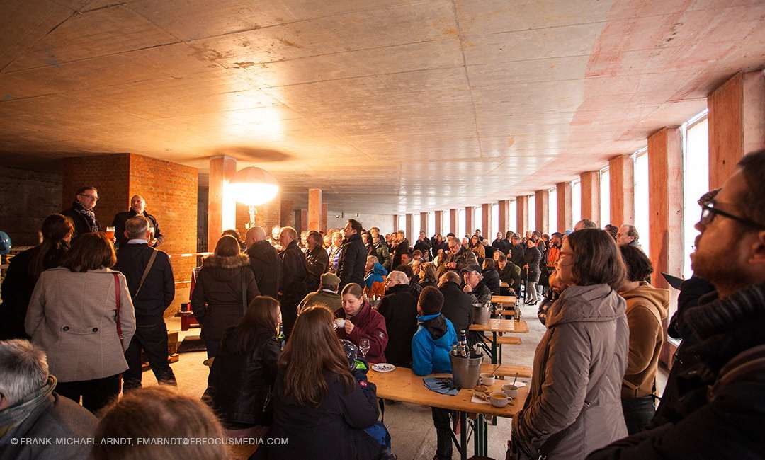 Bei nasskaltem Aprilwetter feierten die geladenen 200 Gäste, bestehend aus den am Ausbau beteiligten Firmen und weiteren Besuchern, am 26. April 2016 den von HC HAGEMANN fertiggestellten erweiterten Rohbau des Planetariums. Nach der Begrüßung durch Planetariumsdirektor Thomas Kraupe wärmten sich die Feiernden mit Gulaschsuppe im neuen Teil der Einrichtung auf und stießen darauf an, dass die erste Etappe der Erweiterungsarbeiten geschafft ist. Die Stimmung war bestens – überall war die Vorfreude auf das „neue“ Planetarium zu spüren.