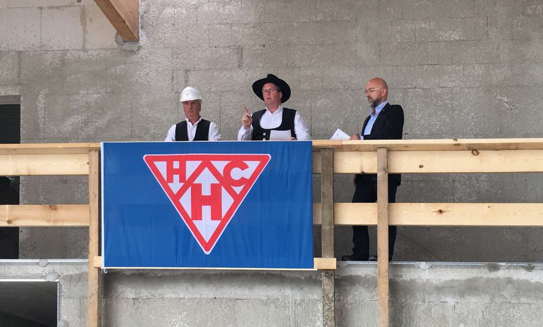 Vor allem die Belegschaft - Wibu hat bundesweit 350 Mitarbeiter, davon rund 120 in Ahrensburg – war zugegen, als die HC Hagemann Poliere Heiko Jungclaus und Dirk Hübner den traditionellen Richtspruch verlasen. Rolf Weinkauff, Geschäftsführer bei der Wibu Zentralverwaltungs GmbH, zeigte sich in seiner Ansprache sehr glücklich über den Verlauf des Bauvorhabens.