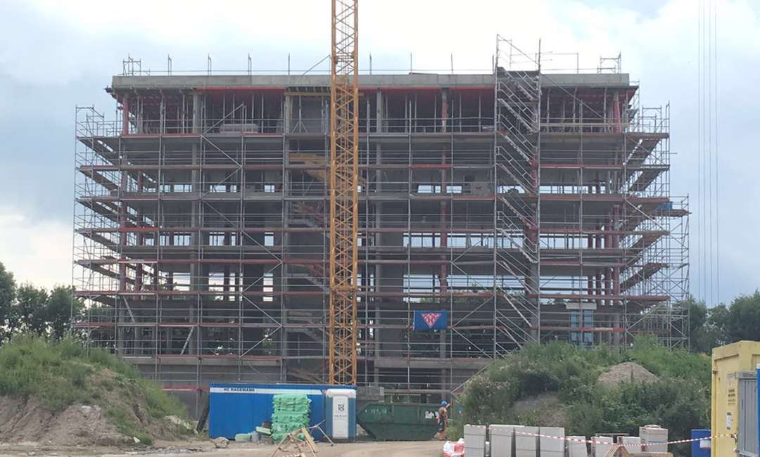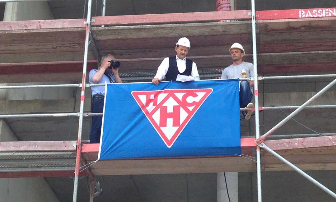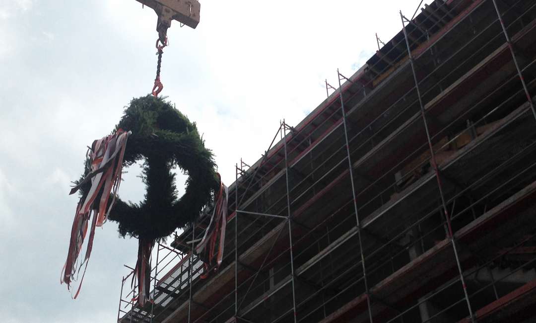 Gerade einmal drei Monate nach der Grundsteinlegung im Frühjahr konnte am 12. Juli beim Neubau des Verwaltungsgebäudes der DEK Richtfest gefeiert werden.