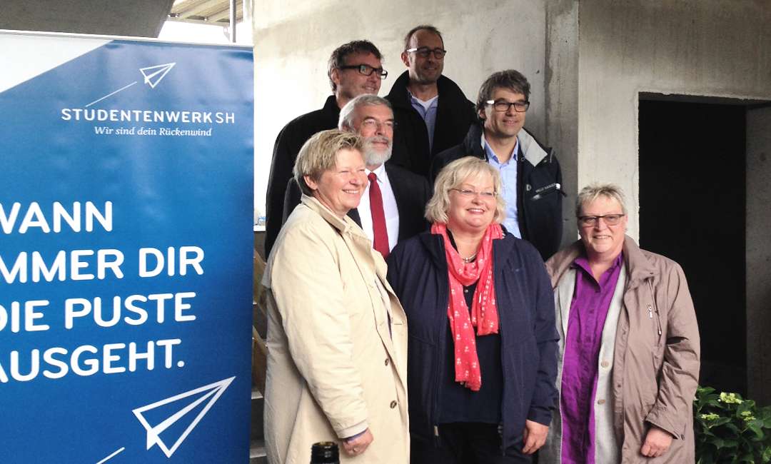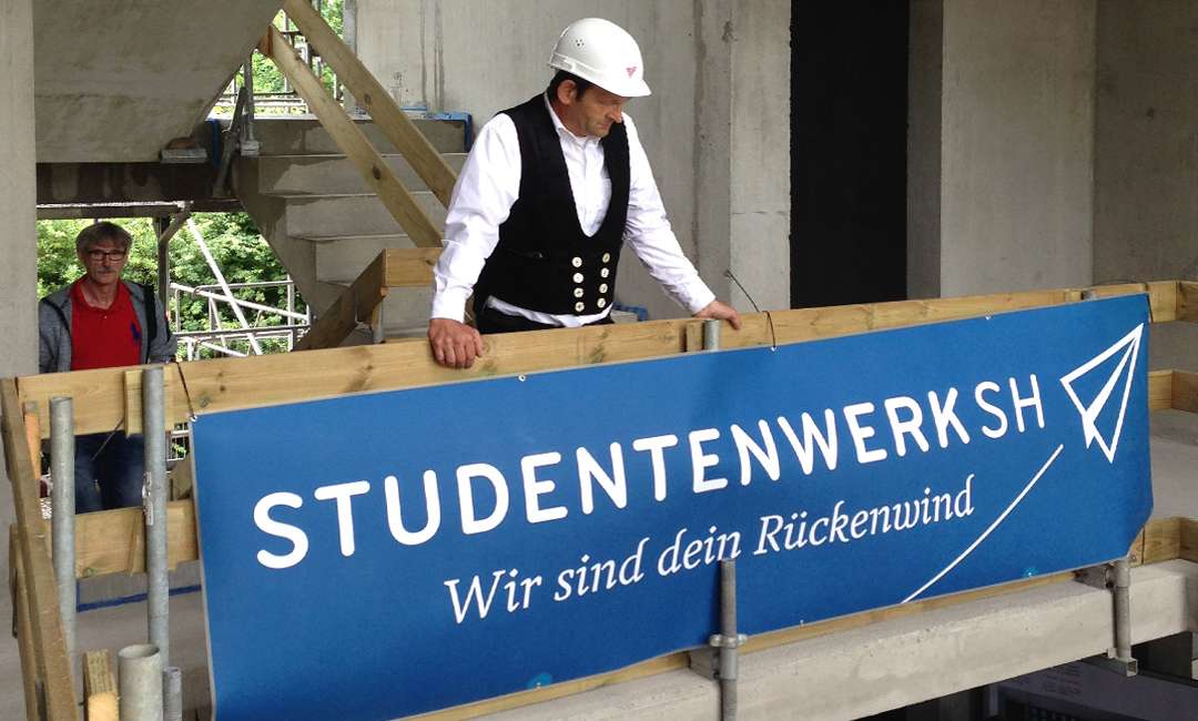 Reibungslos und im Zeitplan ist der Rohbau des neuen Studentenwohnheims auf dem Flensburger Campus nach nur drei Monaten Bauzeit fertig gestellt worden. Somit konnte am Freitag, den 01. Juli das Richtfest gefeiert werden. Begrüßt wurden die Gäste von Wissenschafts-Staatssekretär Rolf Fischer, der in seiner Ansprache das Engagement des Studentenwerks SH lobte, bezahlbaren Wohnraum für Studierende zu schaffen.