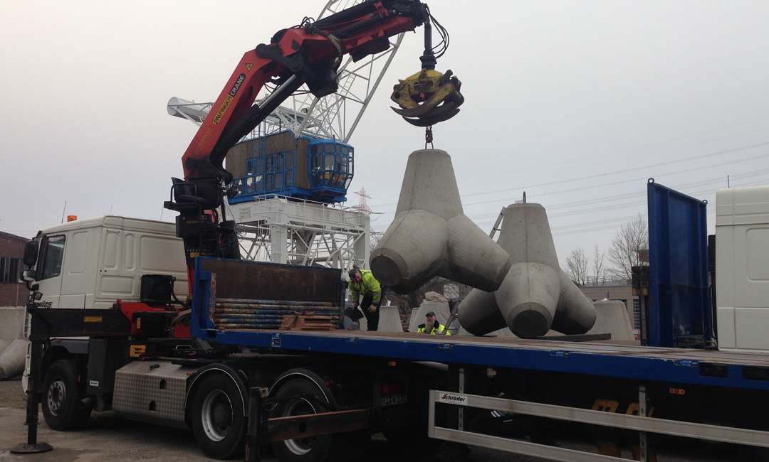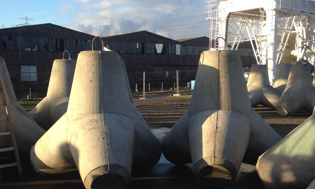 Einen speziellen Auftrag hat HC Hagemann von der Kunstausstellung Emscherkunst 2016 erhalten: 60 Tetrapoden wurden für einmal nicht für den Hochwasserschutz, sondern als Teil eines Kunstwerks produziert.