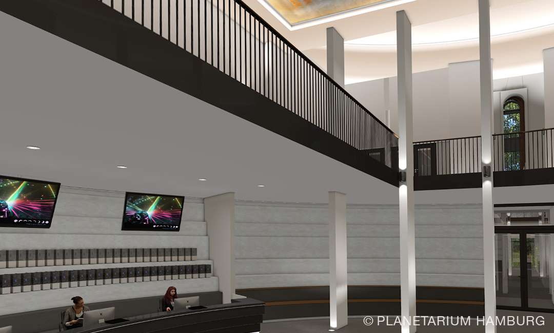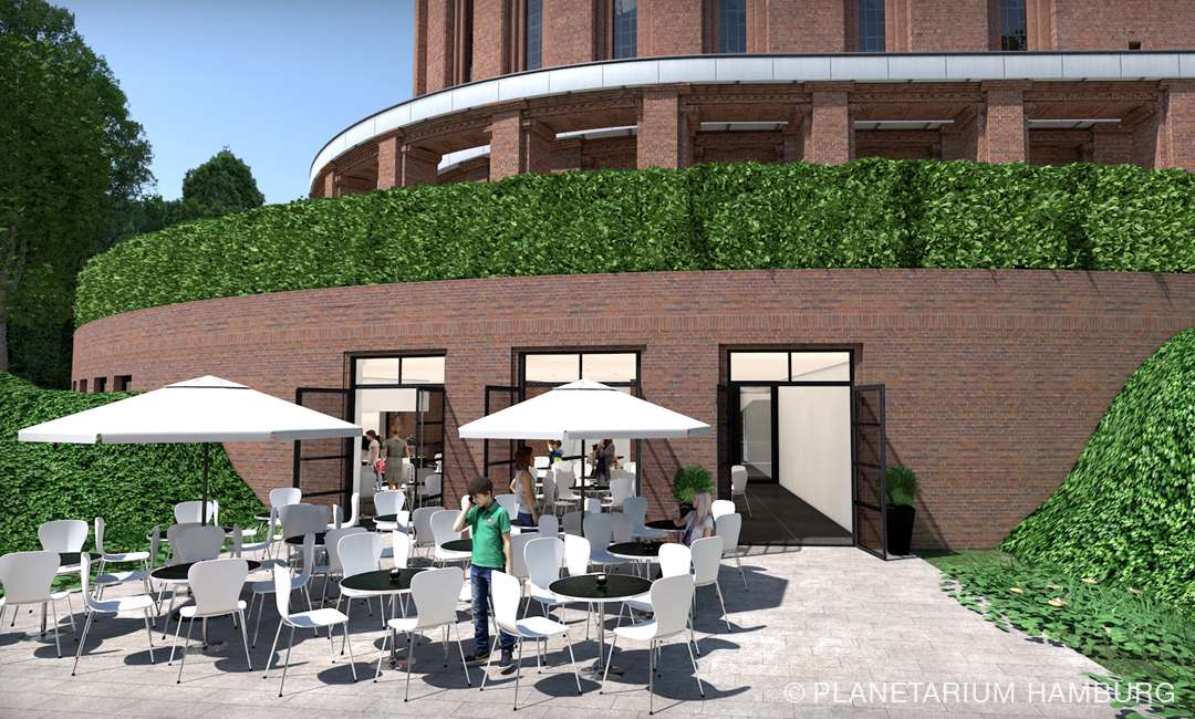 Um den vielen Planetariumsbesuchern mehr Platz und Aufenthaltsqualität bieten zu können, wurde seitens der Stadt Hamburg die Erweiterung des Gebäudes beschlossen. Kernstück der Arbeiten ist der Ausbau des von außen begrünten Sockels, auf dem der denkmalgeschützte Wasserturm steht. HC HAGEMANN erstellt als beauftragte Baufirma nach den Abbrucharbeiten die Rohbauarbeiten für den Neubau innerhalb sowie außerhalb des Sockels. In dem massiven, bunkerähnlichen Fundament werden zusätzlich 1.200 Quadratmeter für neue Ausstellungsflächen, Büros, ein Restaurant und einen Laden geschaffen. Für Schülergruppen entstehen Seminar- und Klassenzimmer.