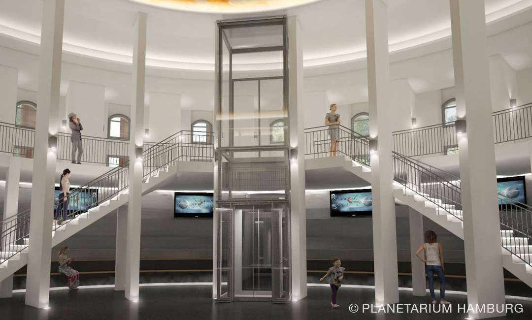 Besucher, die zukünftig ins Planetarium wollen, müssen nicht mehr die zahlreichen Stufen hinaufsteigen, sondern kommt ebenerdig vom Stadtpark aus hinein. Über zwei Aufzüge sind Sternensaal und Aussichtsplattform auch mit Rollstuhl oder Kinderwagen erreichbar. Zum Verweilen wird es außerdem eine Außengastronomie vor dem Planetarium geben. Der Ausbau des Sockels erfordert eine temporäre Schließung des Planetariums mit Beginn der Bauarbeiten seit dem 3. August 2015. Die Wiedereröffnung ist für Anfang 2017 geplant.