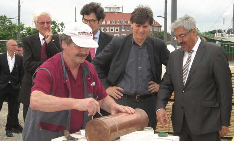 Grundsteinlegung beim Neubau des Bürogebäudes der Deutschen Extrakt Kaffee