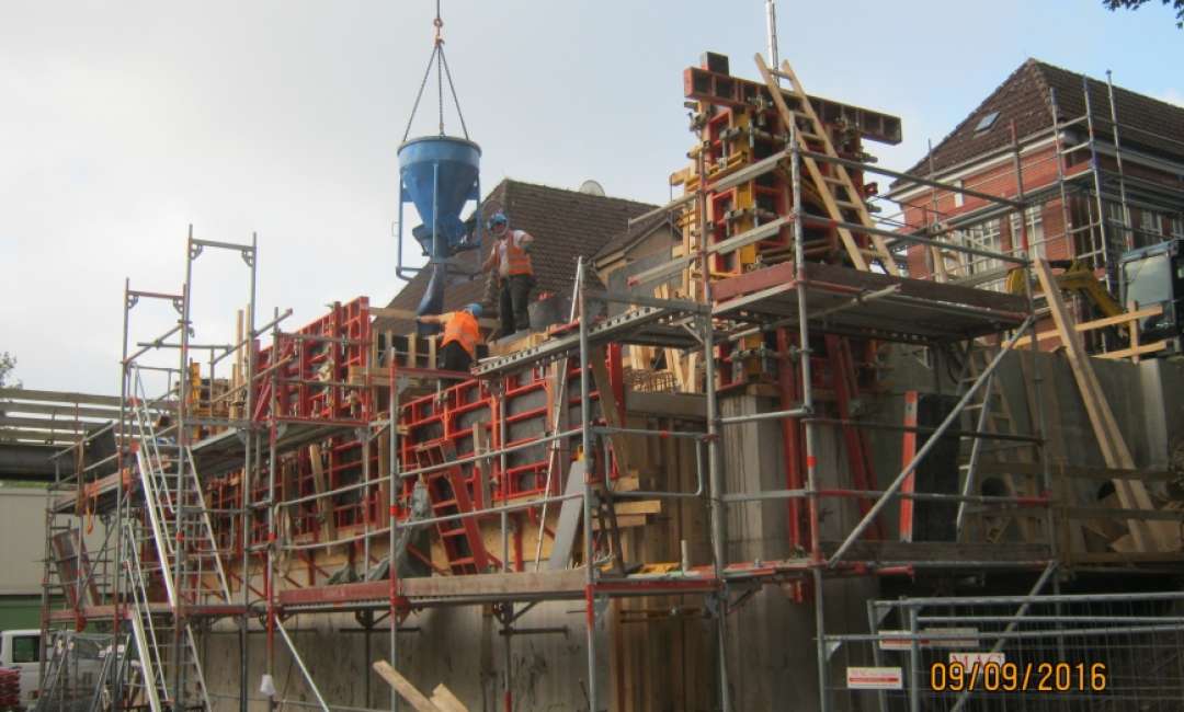 Das dritte Bauwerk war durch einen Zugunfall so stark beschädigt, dass die bestehenden Lagersockel und Kammerwände mit Hochdruckwasserstrahlen abgebrochen wurden und anschließend in Ortbeton wiederhergestellt wurden.