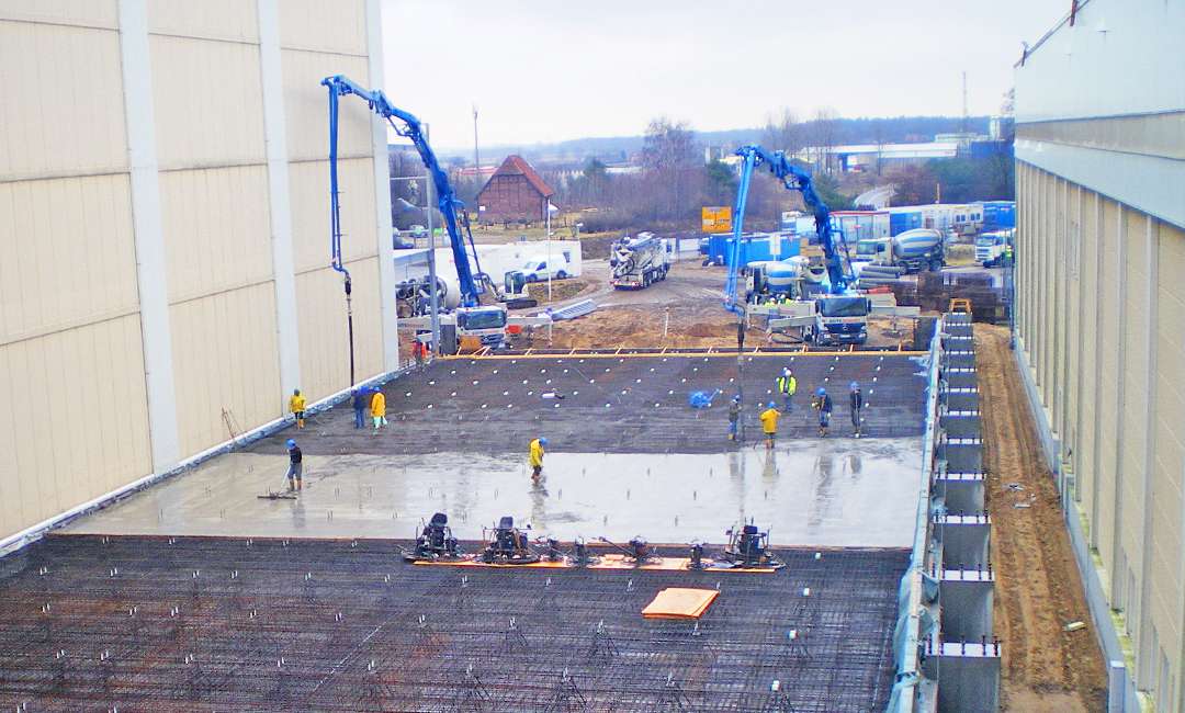 Für die Dr. Oetker Tiefkühlprodukte GmbH in Wittenburg wurde zur Erweiterung des vorhandenen Logistikzentrums ein neues Hochregallager errichtet. Die Baumaßnahme erhöhte die Kapazität an Palettenstellplätzen im TK-Bereich. Die Temperatur in diesem Hochregallager beträgt nach Inbetriebnahme dauerhaft -28°C. Die Erweiterung der TK-Lagerfläche erfordert parallel eine Vergrößerung des Versandbereiches zur Abwicklung des Lieferverkehrs. Die Maßnahme wurde in Ortbeton und mit Stahlbau-Fertigteilen ausgeführt.