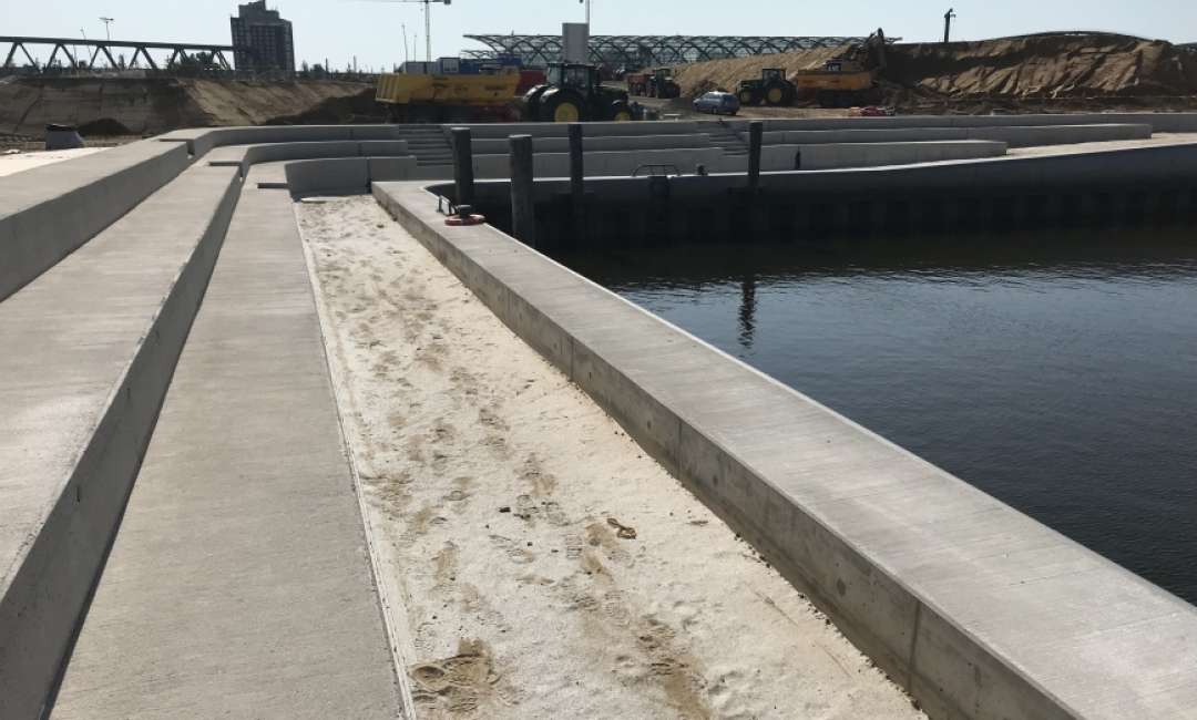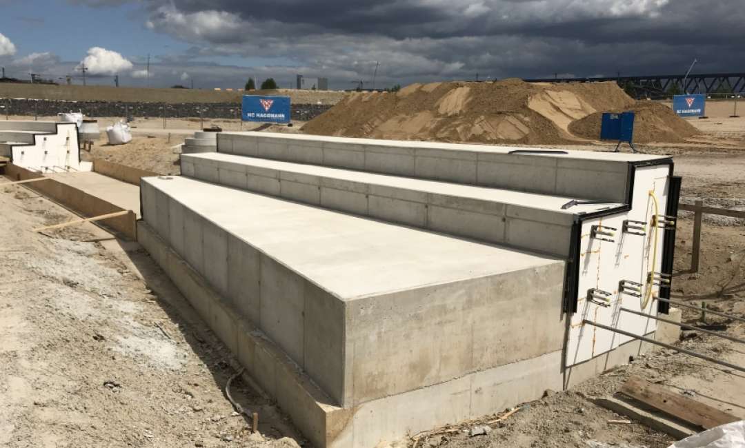 Die Hafencity Hamburg GmbH beauftragte HC Hagemann am neuen Amerigo-Vespucci-Platz im Baakenhafen der Hafencity mit der Herstellung eines Bauwerks aus Sitzstufen mit integrierten Treppen. Das Bauwerk wurde als Sichtbetonbauwerk erstellt.