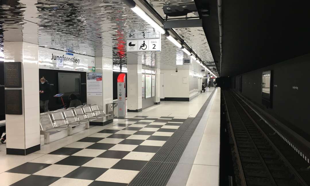 Die U-Bahn-Haltestelle Jungfernstieg der Linie U1 wurde im Rahmen des Programms zur Barrierefreiheit ausgebaut und mit einem neuen Aufzug von Straßen- bis zur Bahnsteigebene ausgestattet, welche jetzt einen weiteren Zugang zur U1 ermöglicht. Weiterhin wurde der Bahnsteig der Linie U1 entsprechend seiner repräsentativen Lage in der Gestaltung und architektonischen Erscheinung stark aufgewertet. Hierzu wurden im Zuge einer Betriebspause der U-Bahn vom 08.06. bis 13.08.2020 sämtliche Boden- und Wandbeläge (Asphalt, Putz und Fliesen), sowie die Deckenbekleidung (Rabitzdecken) entfernt und erneuert. Auf dem Bahnsteig wurde ein besonderer, weiß gehaltener Terrazzobelag eingebaut. Die Decken des Bahnsteiges sind mit einer Spiegeldecke verkleidet worden, so dass hier im Zusammenspiel mit dem weißen Bodenbelag trotz der geringen Bestandshöhe ein völlig neues Raumgefühl entstanden ist.